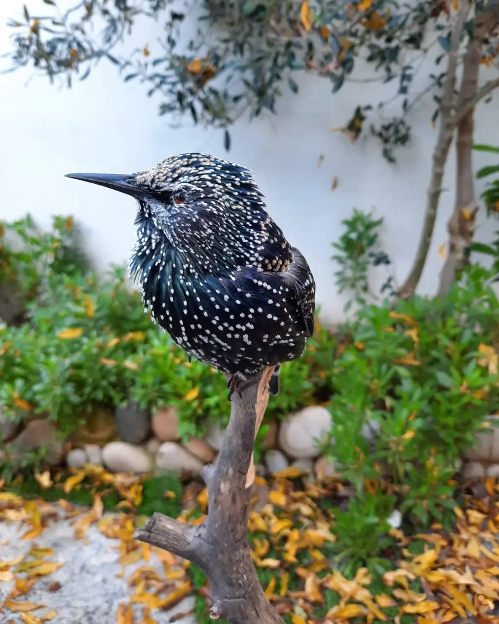 A beautiful songbird with glossy black wings and a soft pink body, often seen in flocks during migration. This mount highlights its unique coloring and lively form.