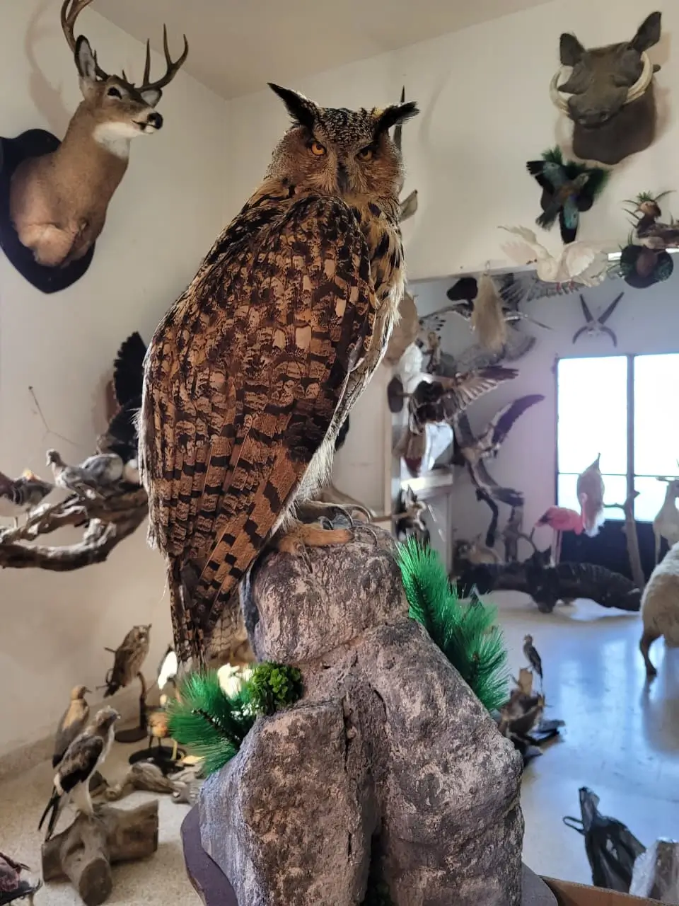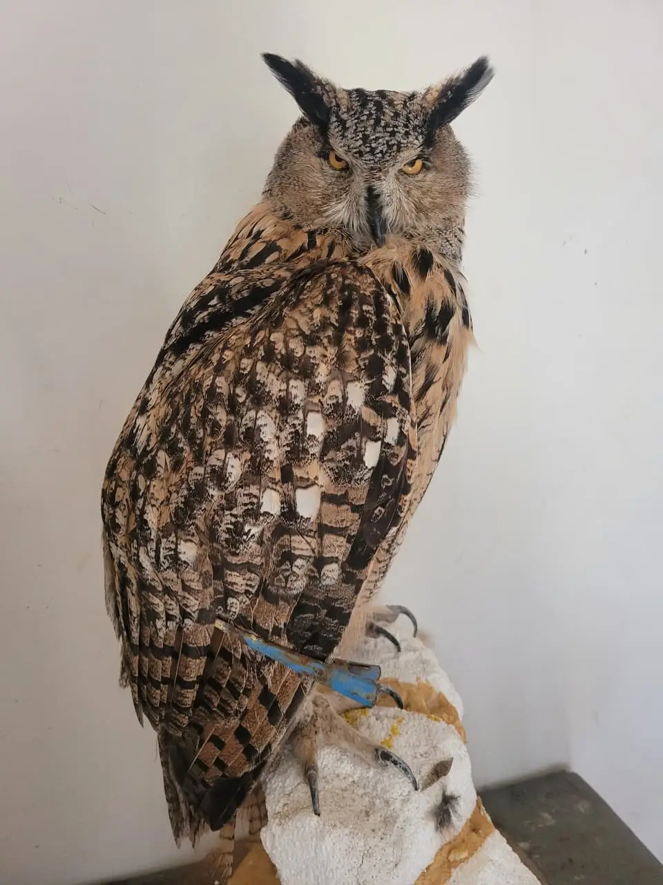 One of the largest and most powerful owls, the Eagle Owl features striking orange eyes, massive wings, and bold ear tufts. This mount shows its fierce and commanding presence.