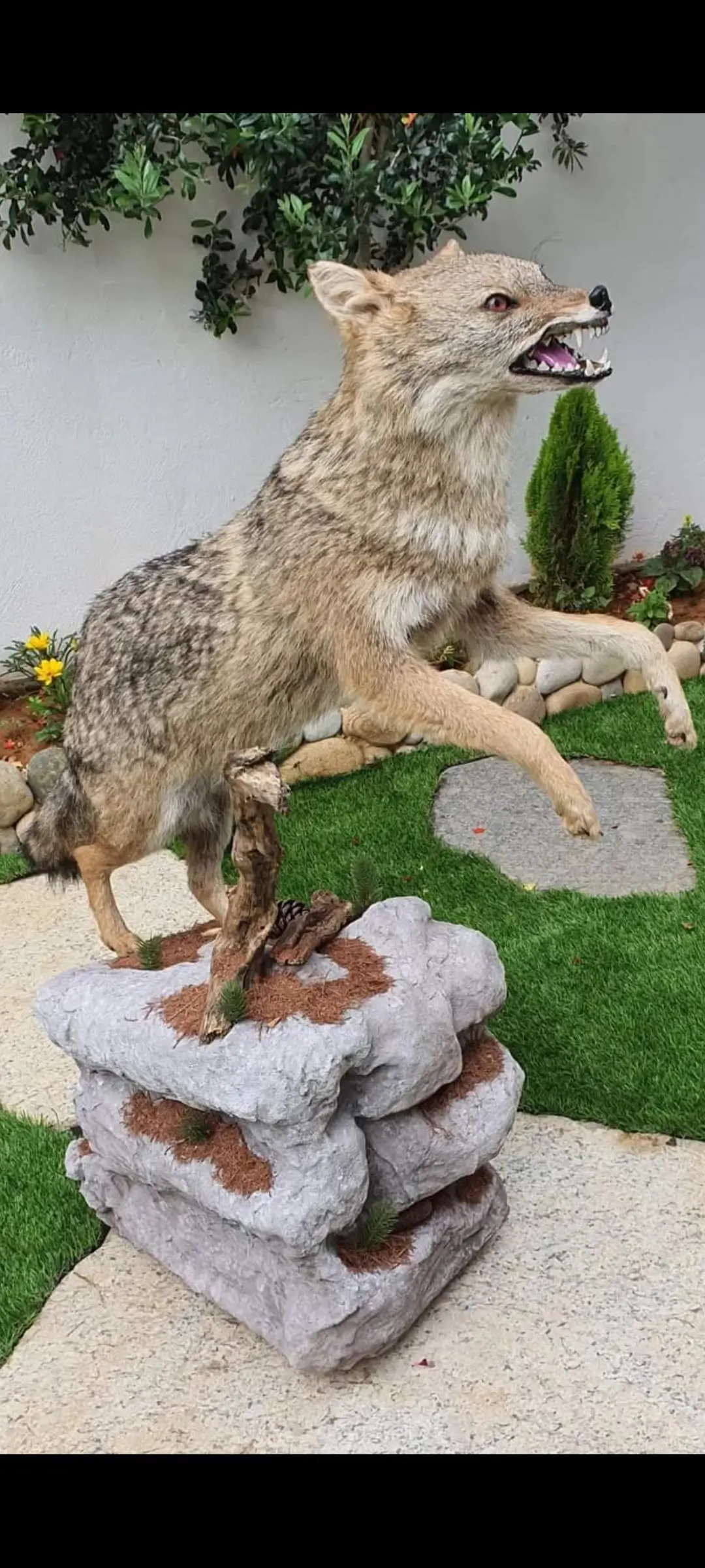 A clever and adaptable predator mammal with a golden-brown coat and sharp, alert features. This mount captures its lean build and watchful gaze.