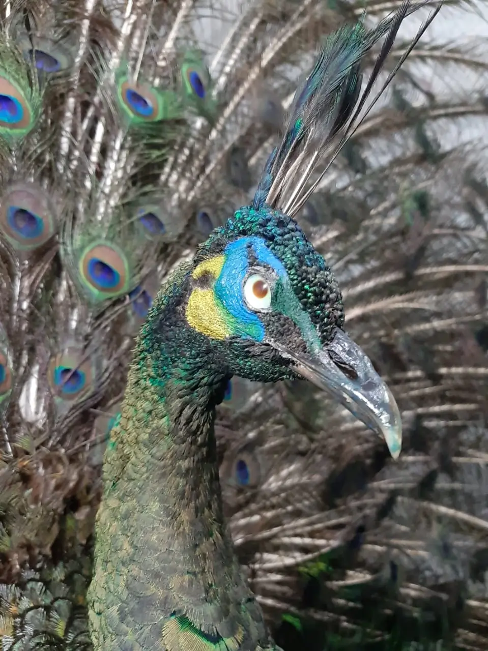 Did you know? The Green Peacock is louder and more aggressive than the blue species — and it can even fly short distances despite its long tail!
