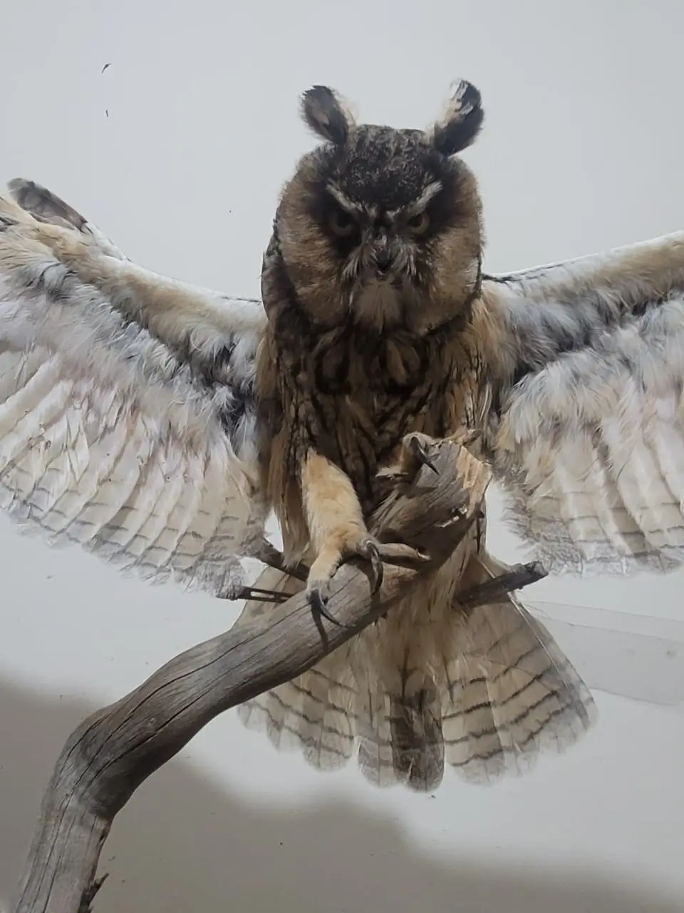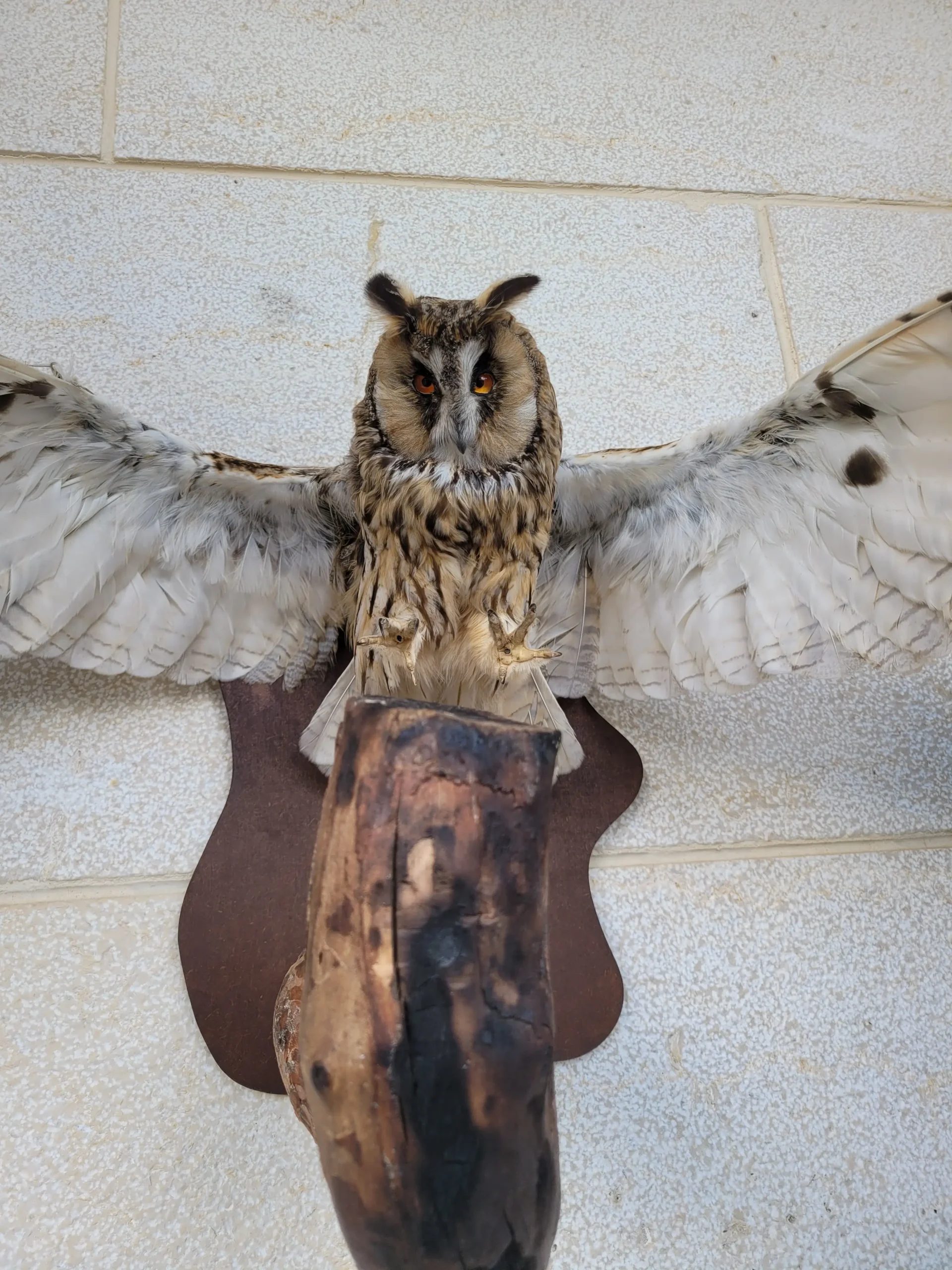 A slender owl known for its tall ear tufts and bright orange eyes. This mount captures its silent, watchful presence in the night.