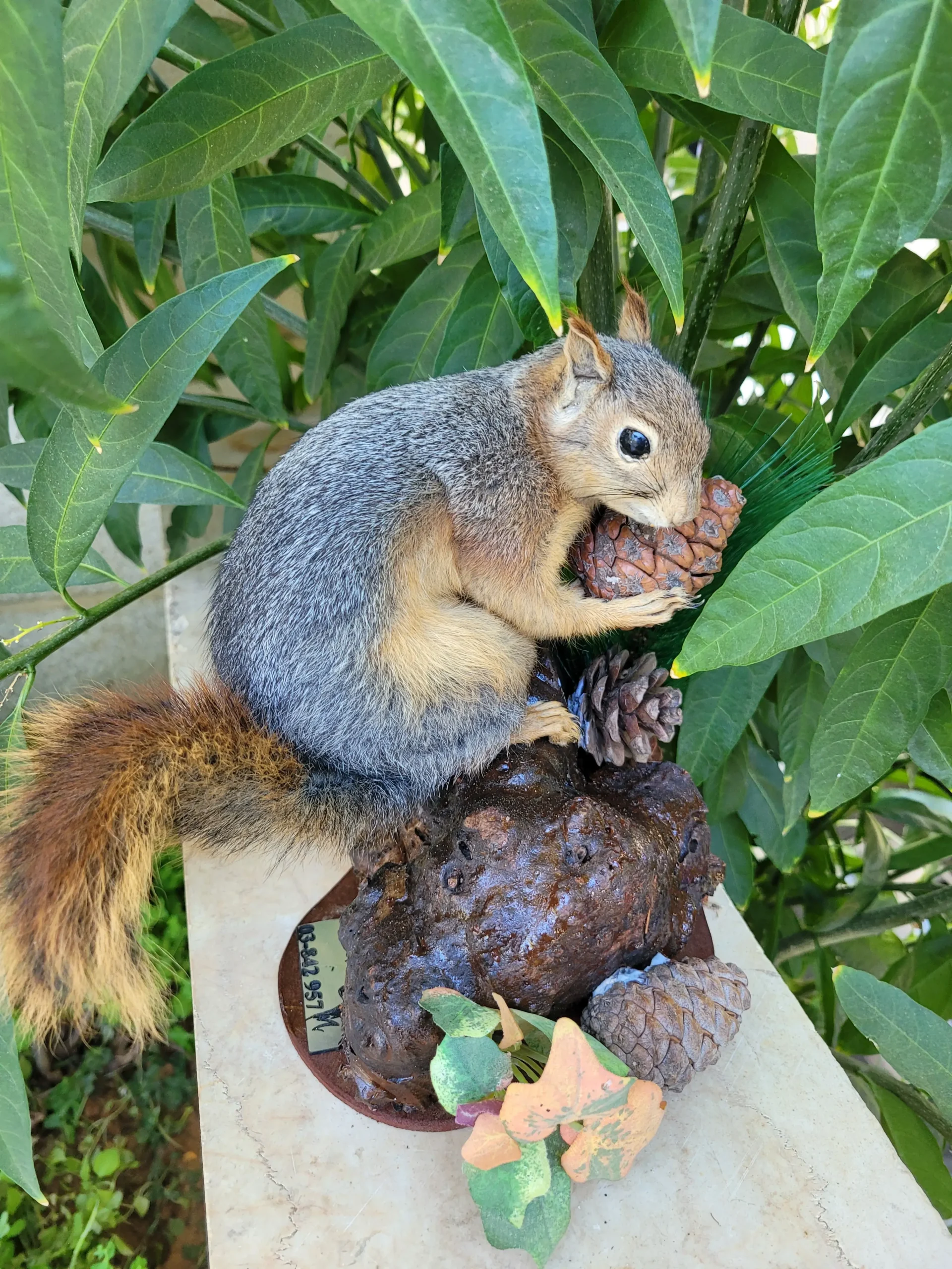 A small, nimble tree-dweller with a bushy tail, reddish-brown fur, and bright, curious eyes. This mount captures its lively and alert posture.
